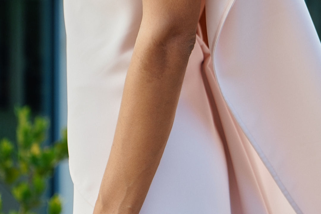 A one-size cape with a mock neck and two panels that can be tied in different ways. Crafted with a light crepe material, this flowing cape is an effortless piece that can be perfectly matched with the 'Vera' skirt.