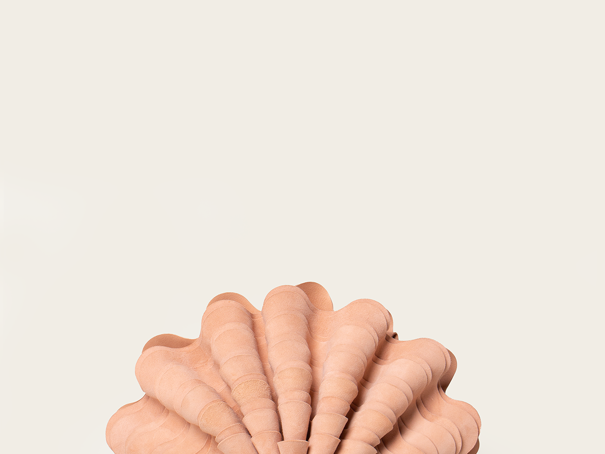 Our signature 'Sable Mouvant' piece is now introduced in Suede. It is artfully handcrafted to create a layered seashell shape, evoking a coastal charm and organic elegance.