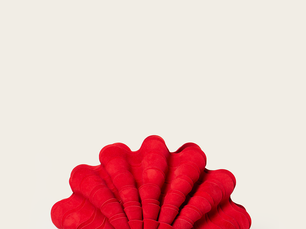 Our signature 'Sable Mouvant' piece is now introduced in Suede. It is artfully handcrafted to create a layered seashell shape, evoking a coastal charm and organic elegance.