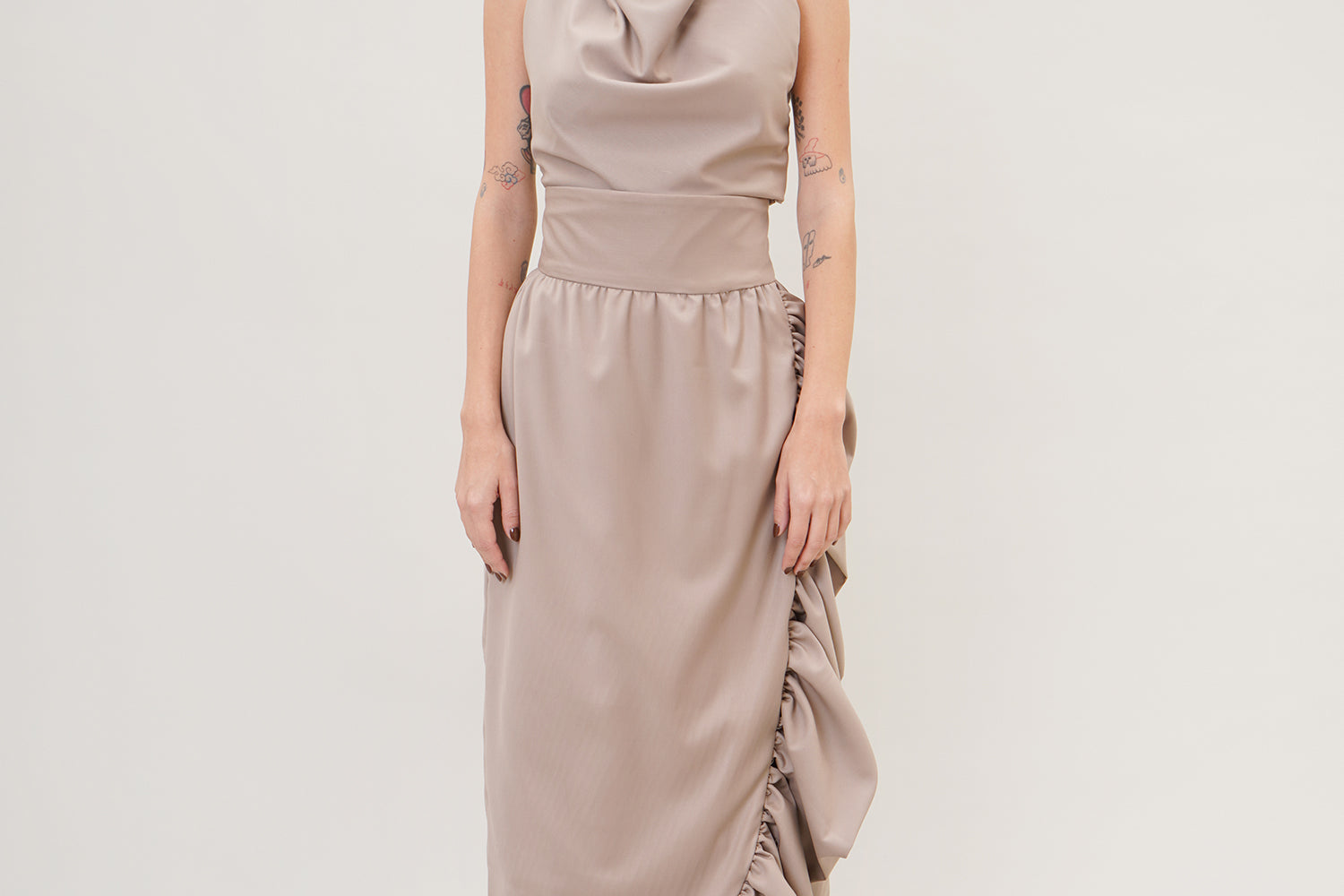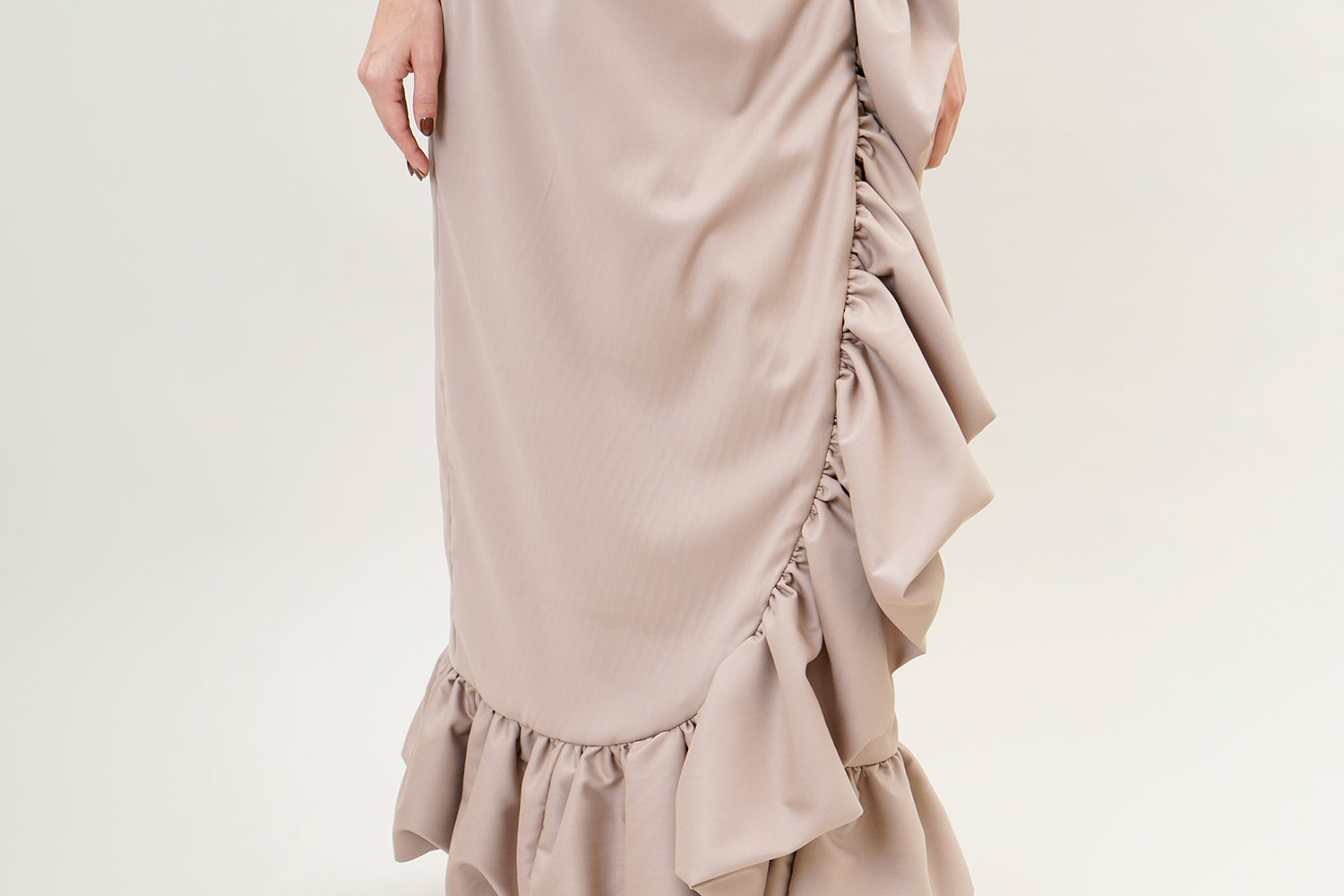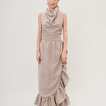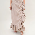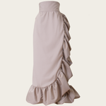 Elevate your style with the statement 'Coquelicot' skirt. A high-waisted voluminous piece with ruffled edges for added flare.