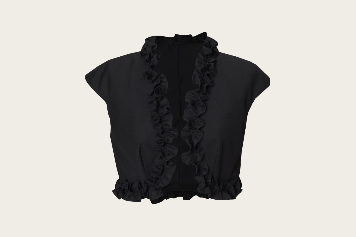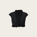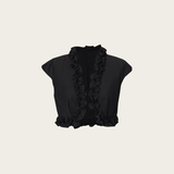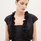 Add a nice layer of softness with the 'Crepuscule' bolero. Pair it nicely with the 'Lula' jumpsuit for a smart casual look.