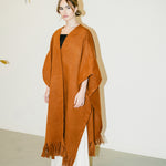 Crafted with soft wool, this embellished one-size poncho will elevate all your winter looks. It features cascading fringes at the hem.