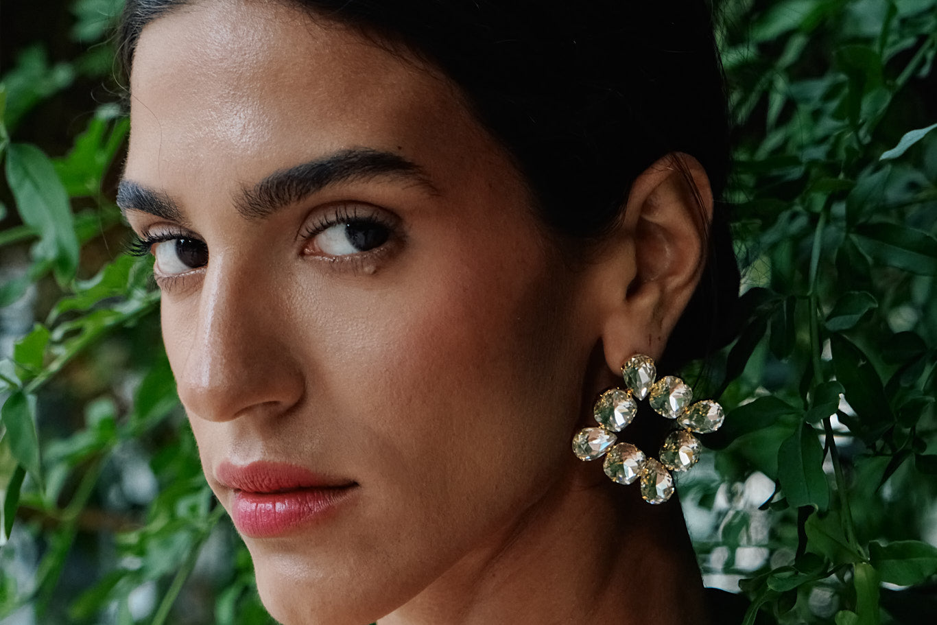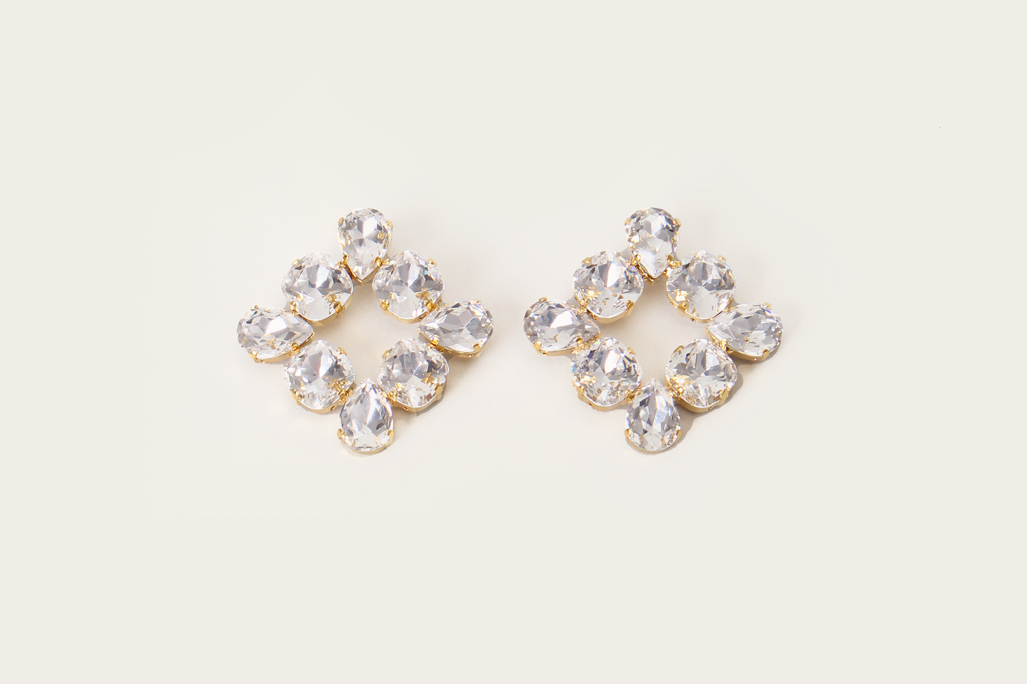A vintage-inspired collection that reflects radiance and sophistication. The 'Diademes' clip-on earrings are crafted with dazzling geometric crystals, creating various statement shapes.