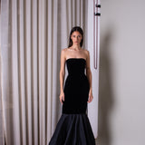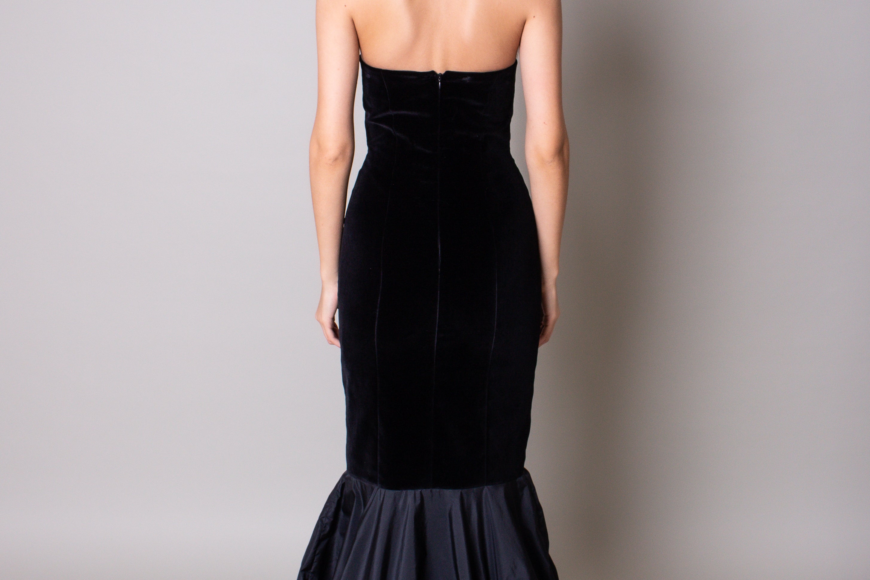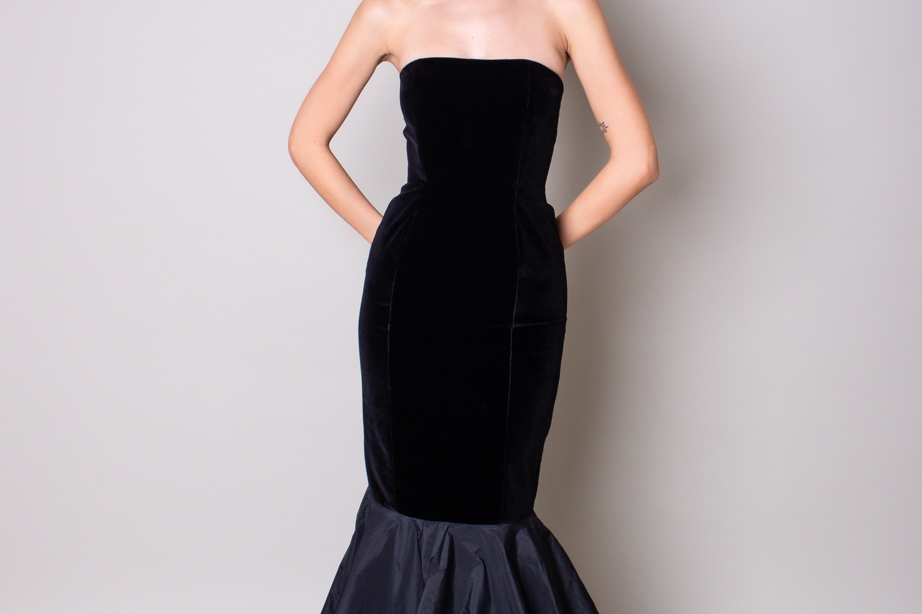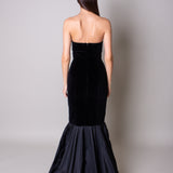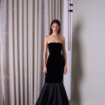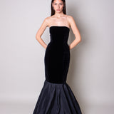 A statement dress for the ages. The 'Vent Leger' is a high-waisted, mermaid cut, strapless dress with a voluminous floor-length hem.