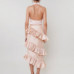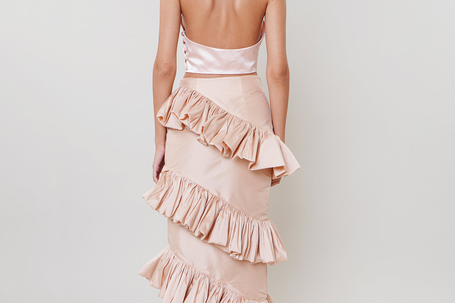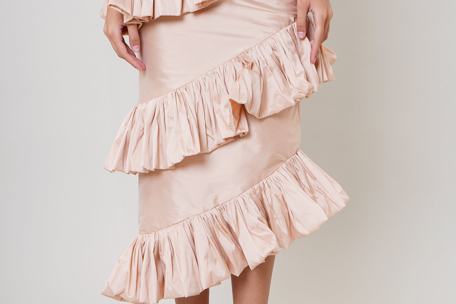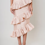 A statement piece like no other. The 'dunes' skirt is a hight-waisted fitted skirt with three layers of gathered ruffles for more fun and flair. .