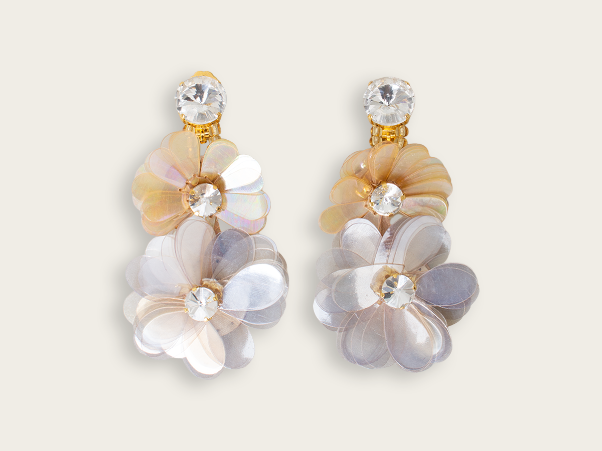 Composition: Sequins, Glass Beads, Gold Plated Brass, Crystal.