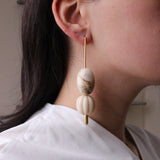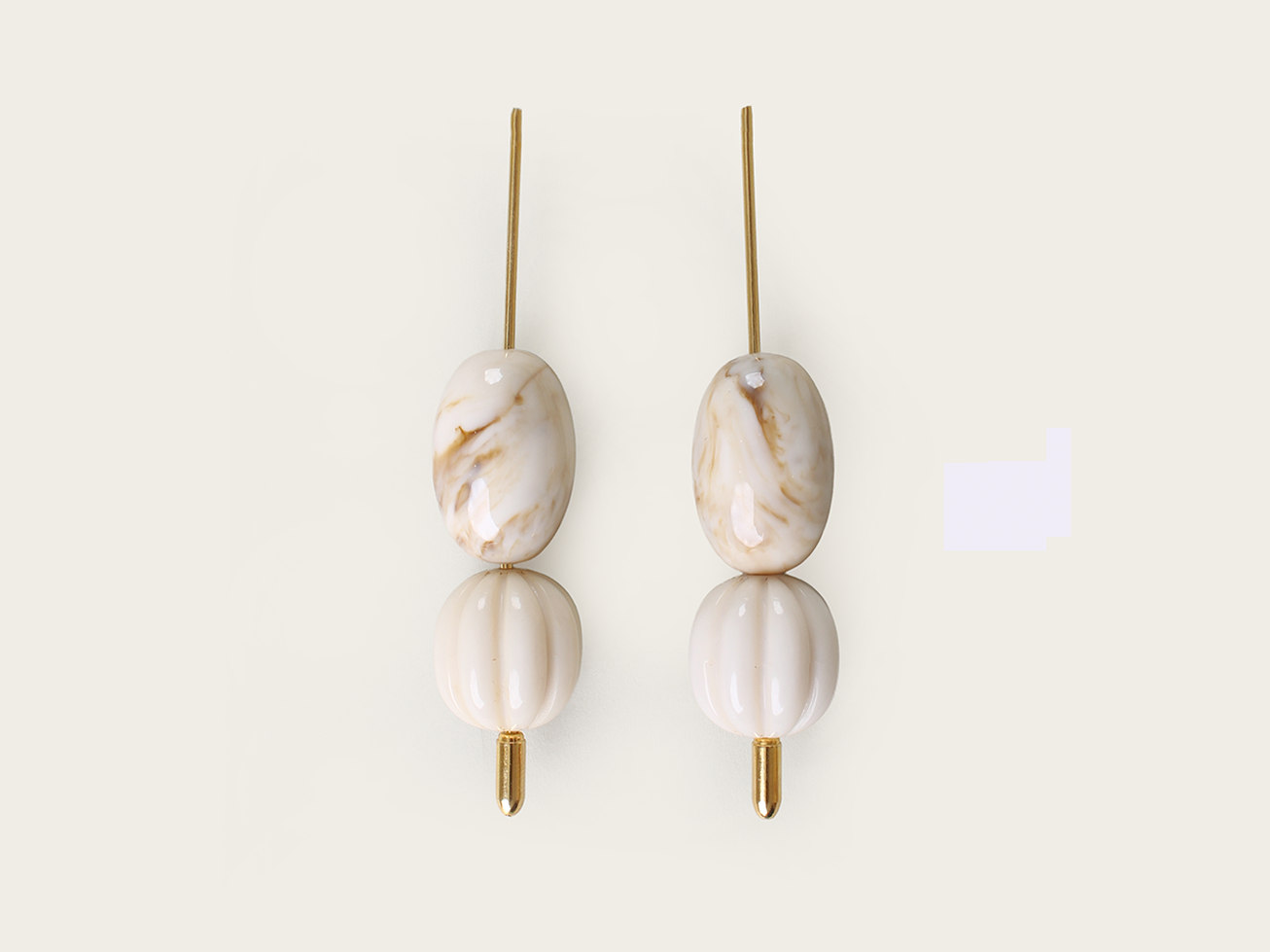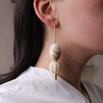 A simple and modern pair with flair. These pierced earrings are light and dangly, carrying geometric acrylic beads.