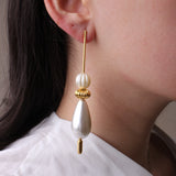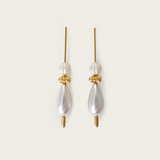 A simple and modern pair with flair. These pierced earrings are light and dangly, carrying geometric acrylic beads.