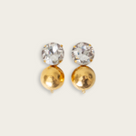 A dazzling clip-on pair featuring an oversized crystal and a large gold bead with a foil texture.