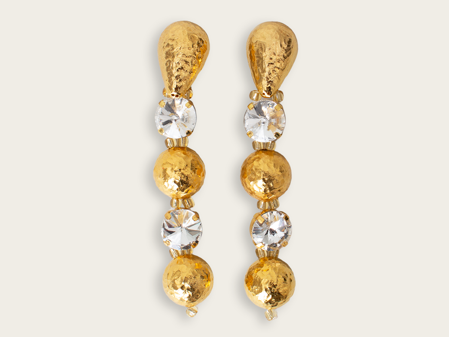 A dazzling clip-on piece for an ultimate statement, mixing a gold foiled finish and shiny crystals.