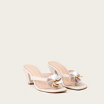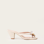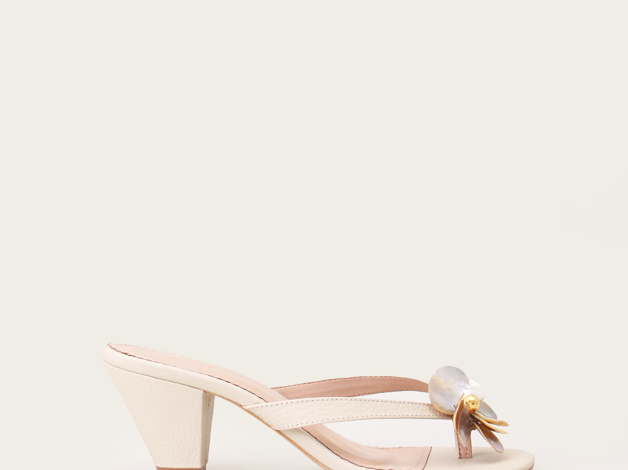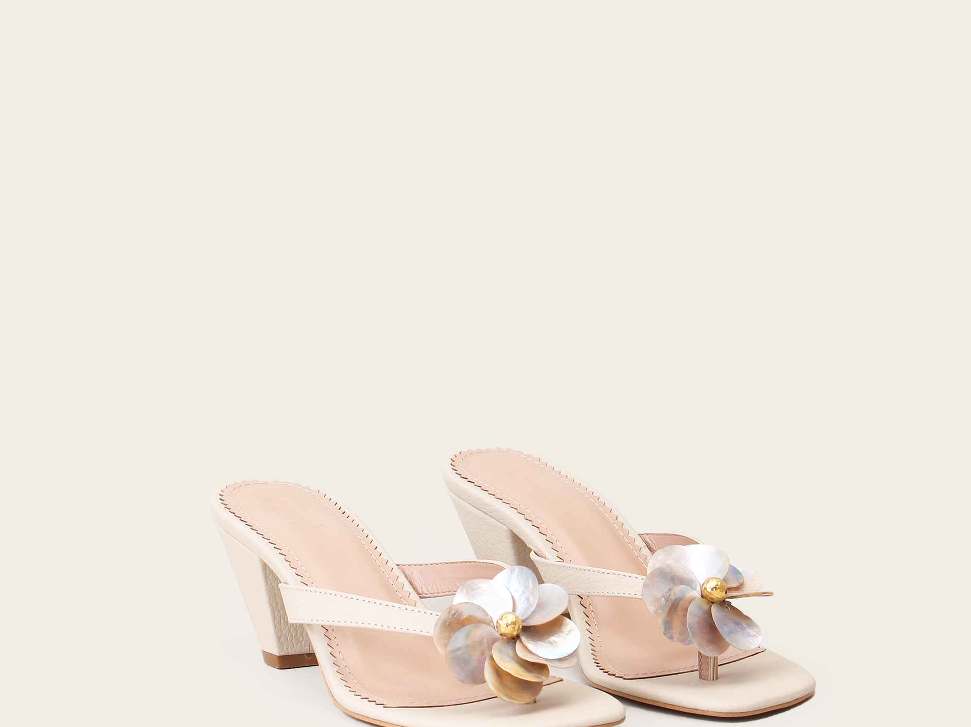 An ideal day-to-night open-toe sandal. With a comfortable squared sole, it features an angular block heel and is embellished with an intricate flower.