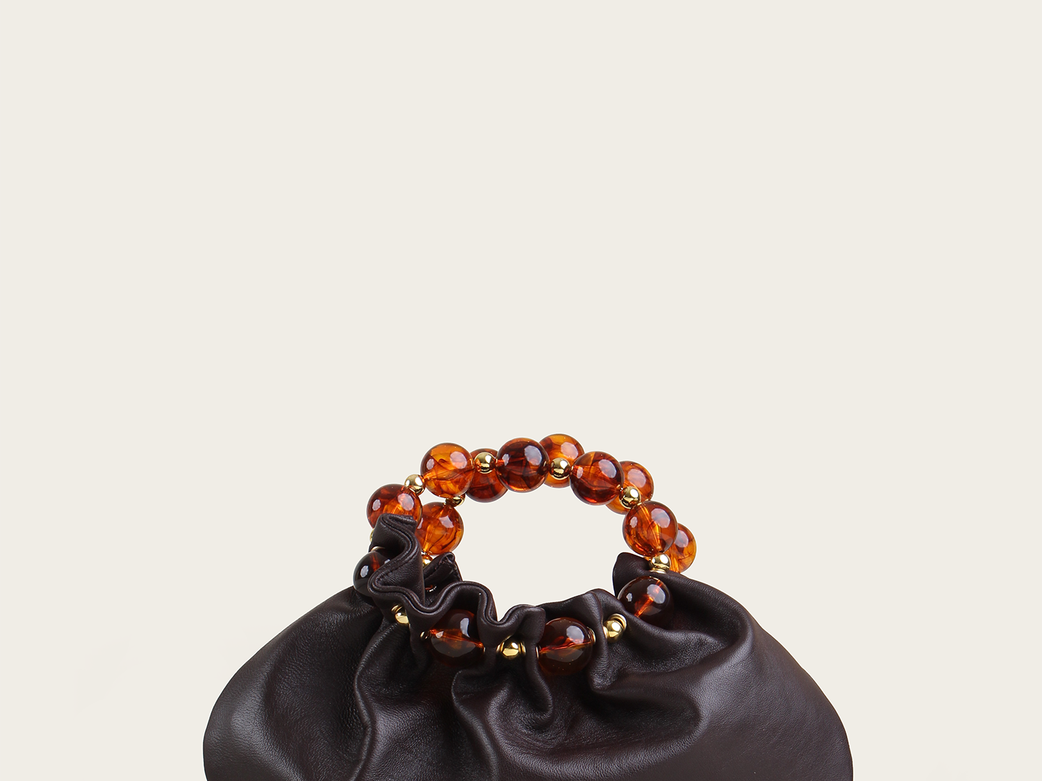 A Vanina classic revived from the archives. Our 'Julie' bag features a beaded circular handle with a moon-shaped base