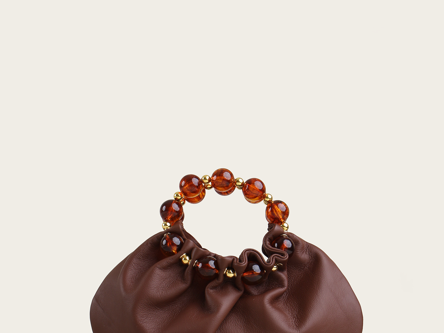 A Vanina classic revived from the archives. Our 'Julie' bag features a beaded circular handle with a moon-shaped base