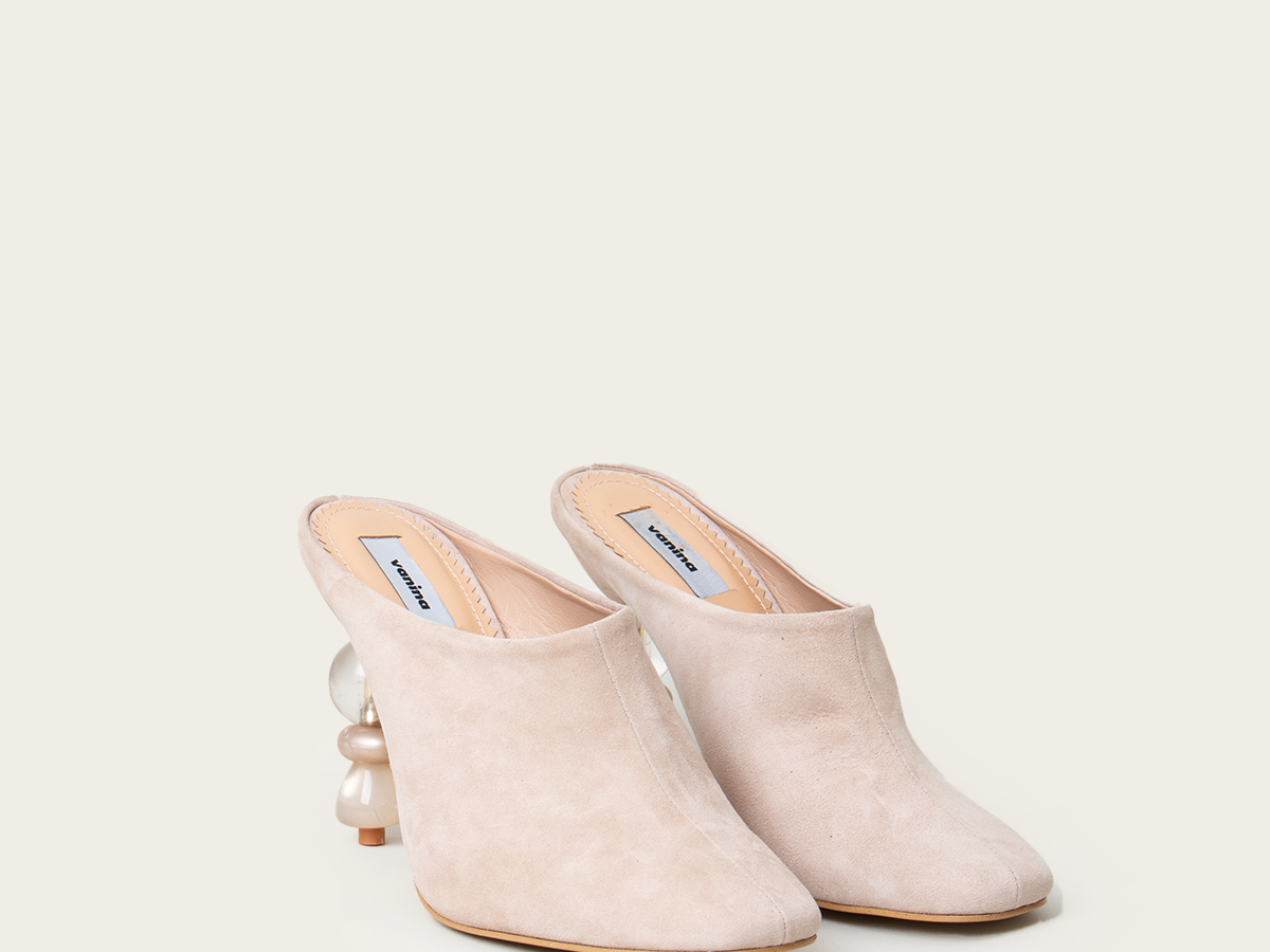 Crafted with a soft suede, these embellished mules scream elegance. They feature a pointed toe and a 10cm embellished with resin geometric beads.
