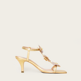 Add a touch of sparkle with the latest 'Eclats de Marguerites' sandals. With a low 7cm heel and a thin T-shaped strap, they are delicately adorned flowers made from iridescent sequins and crystals.
