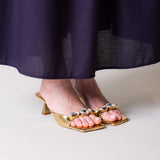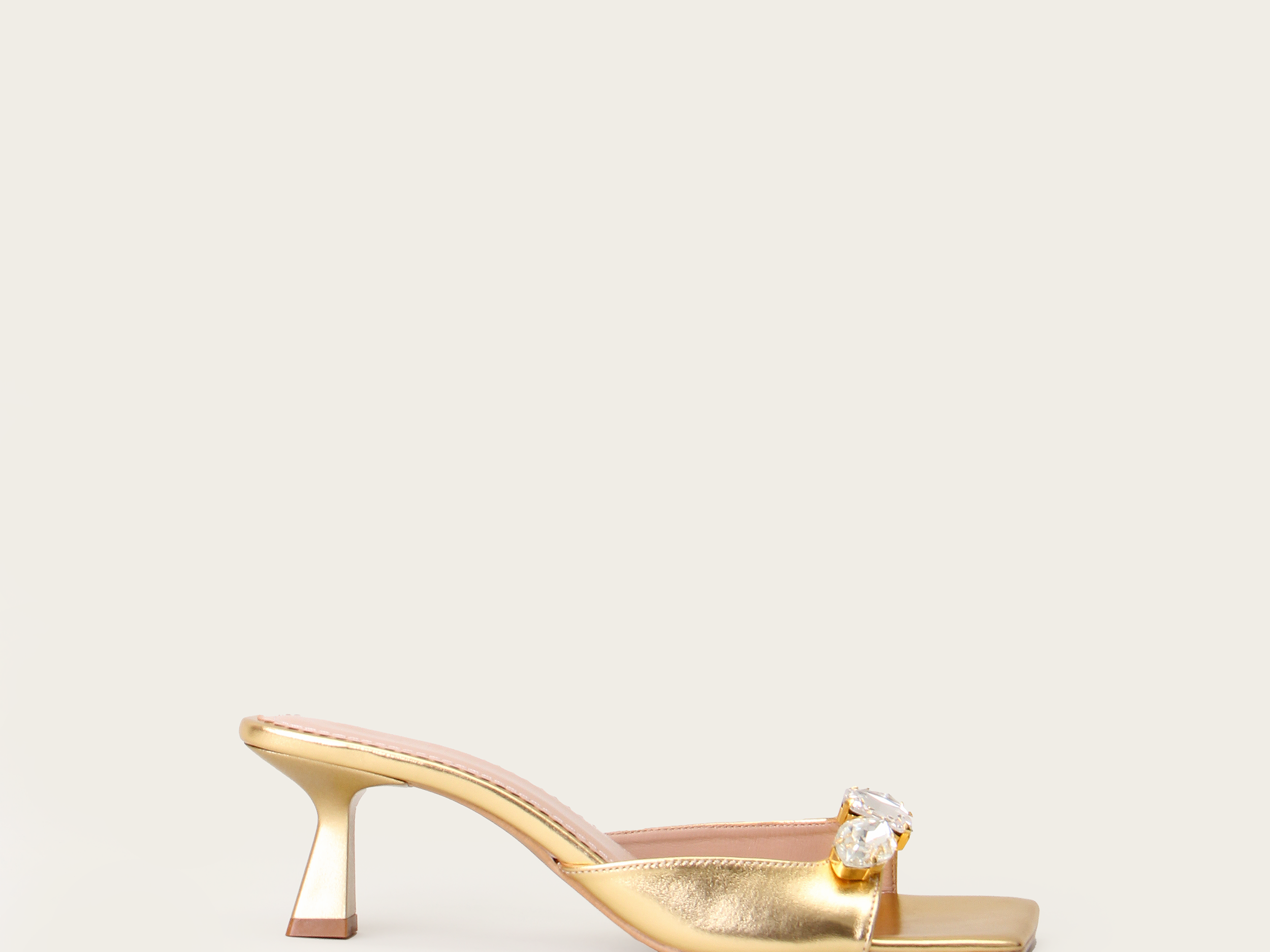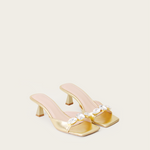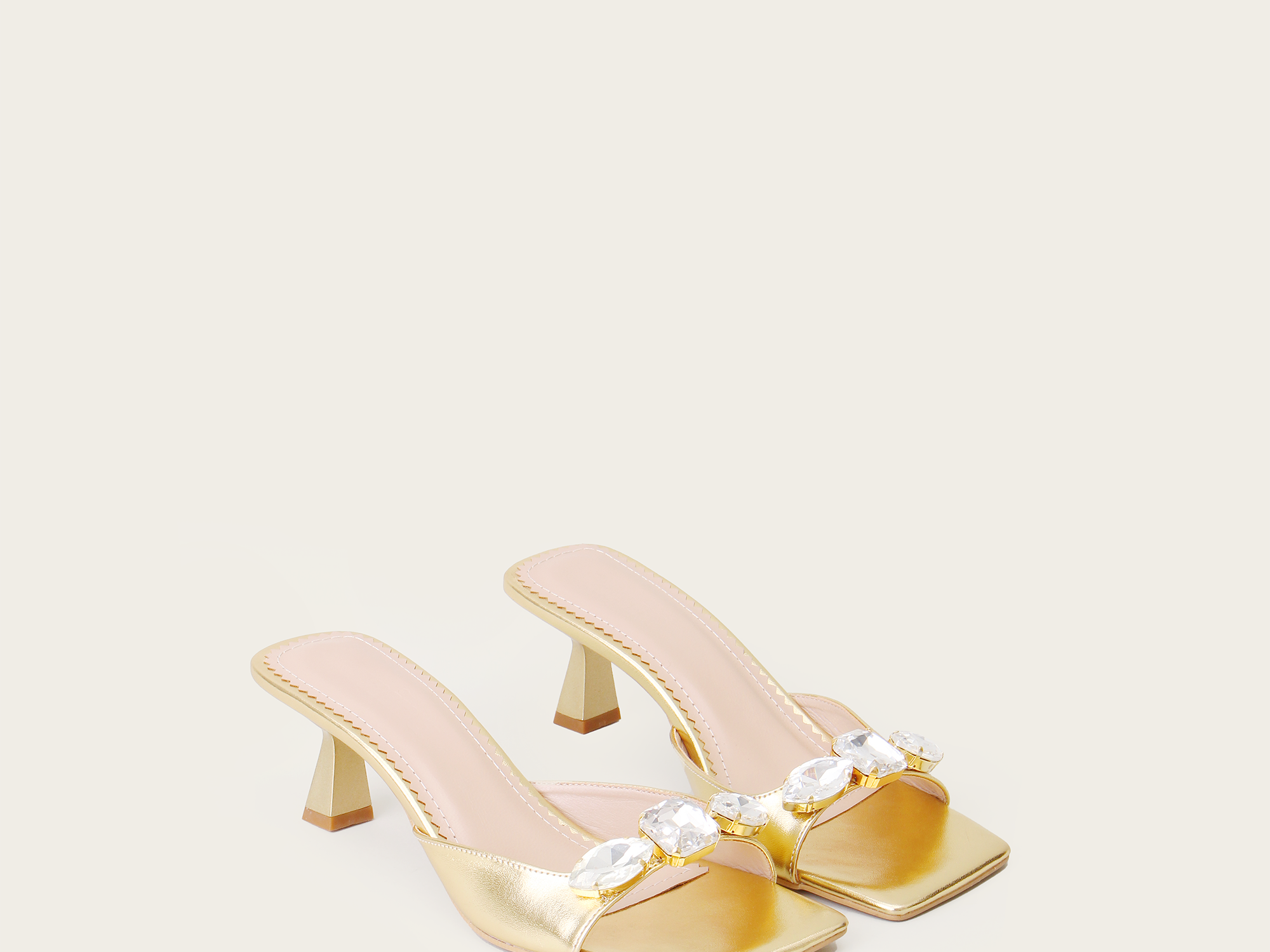 Step into elegance with our latest open sandals. With a squared toe and a low 6cm heel, this piece is delicately adorned with geometric radiant crystals.