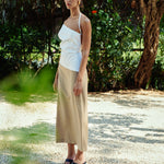 Crafted with a light material, this straight midi skirt can be easily styled for your daily errands.