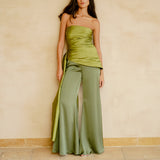 A staple piece for any occasion. The 'Tanya' pants feature a high-rise waist with a fitted cut and flared legs.