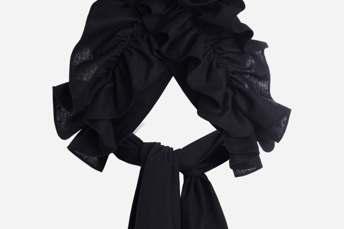 Our 'Sable Chaud' top is a size-free versatile piece. It can be wrapped around your body in different ways. It's cut from refined linen and features layers of statement ruffles. This top is size-free