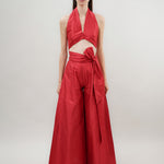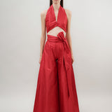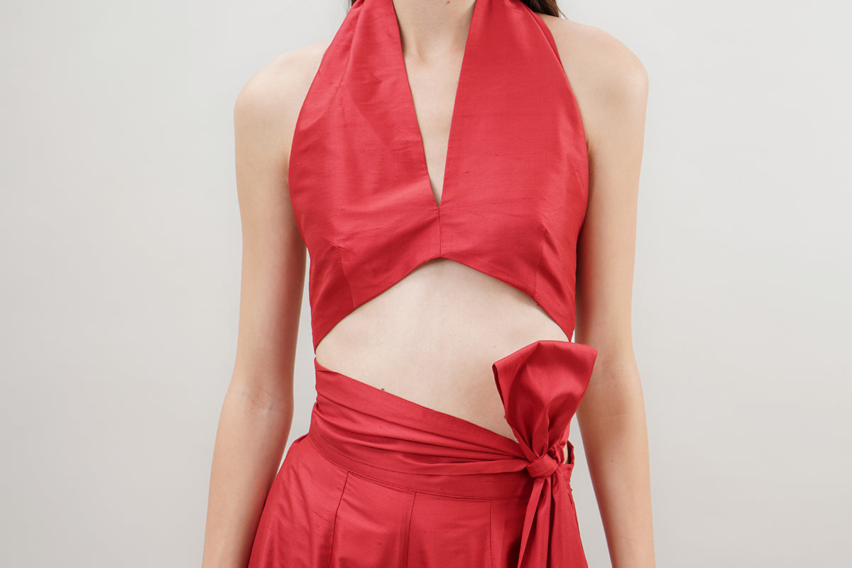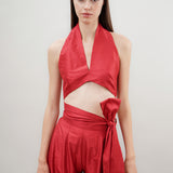 Our 'Vera' top has a deep halterneck, alluring open back and crops above the waist.